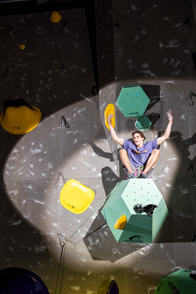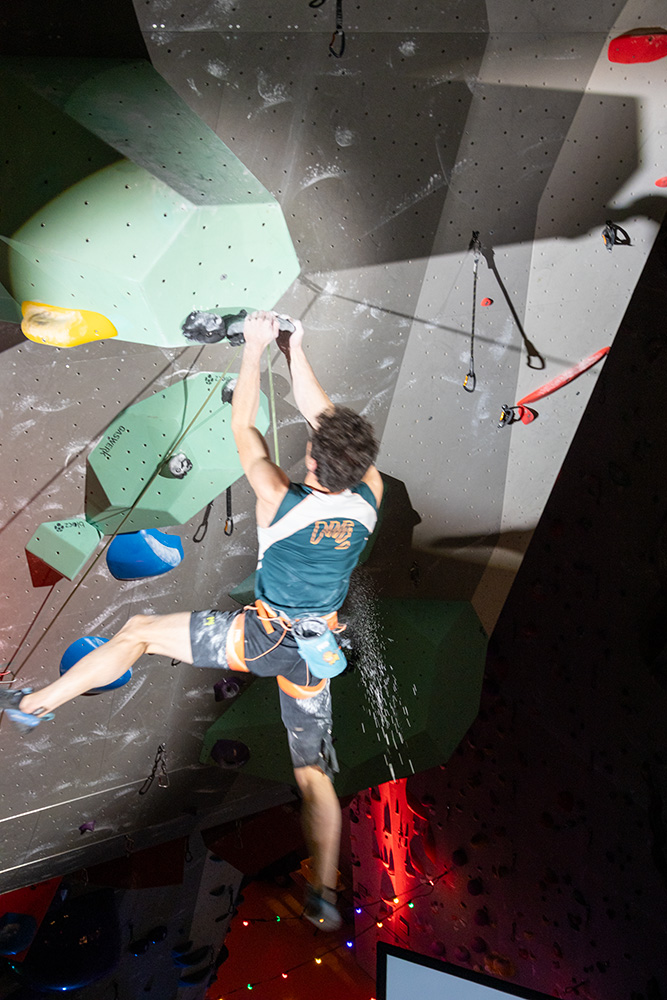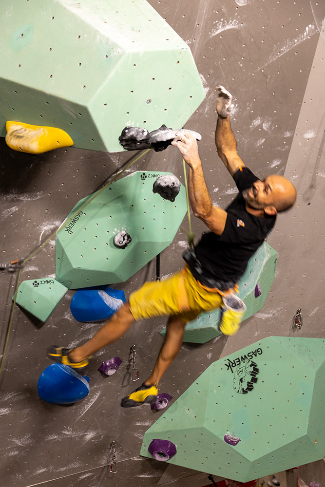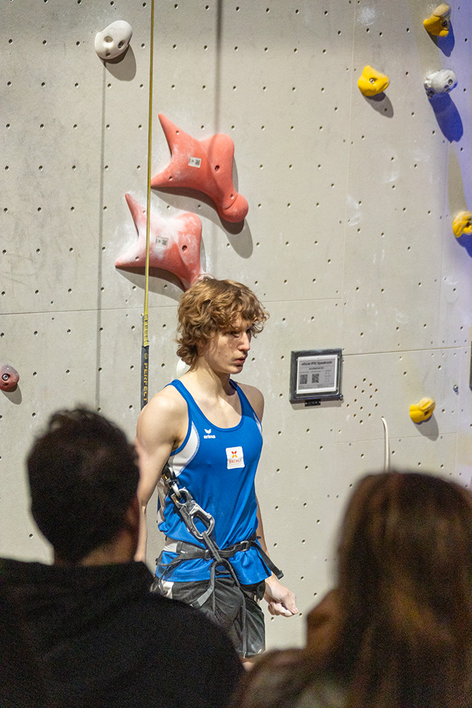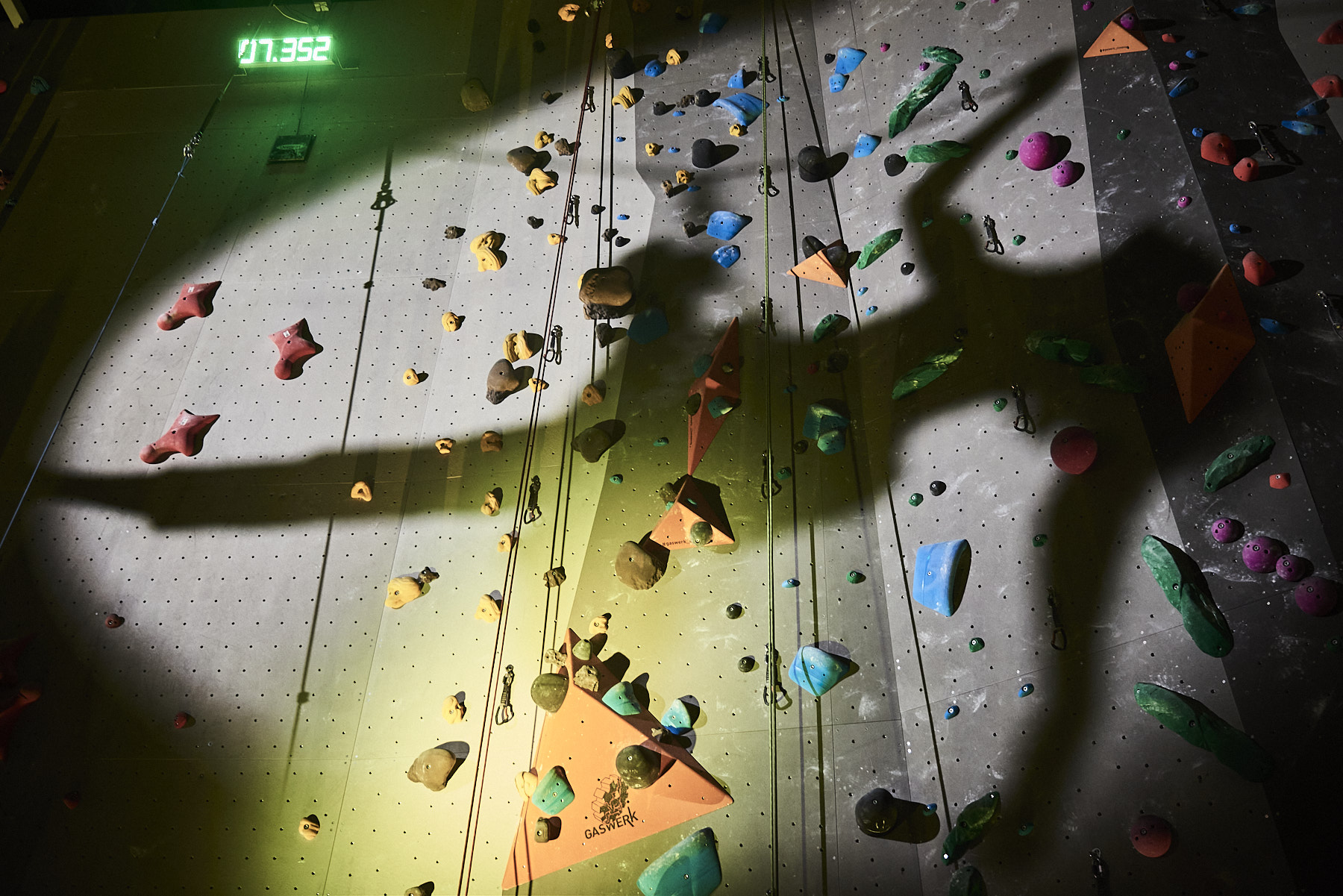 Vorführeffekt: Gilles Meili lieferte den Zuschauern einen ( leider inoffizieller ) Schweizer Rekord im Speedklettern. Trotzdem WOW! Wir gratulieren.